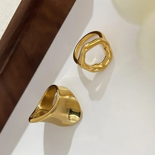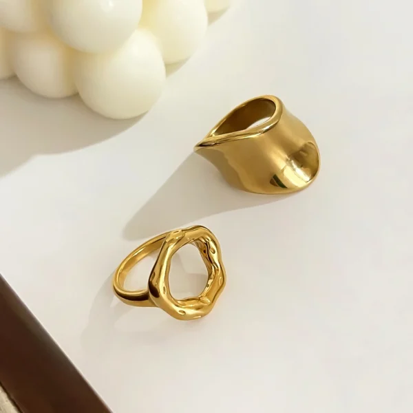 Peri’sbox Minimalism Anti-Tarnish Stainless Steel 18K Pvd Gold Plated Rings for Women Unique Design Fashion Holiday Jewelry Gift